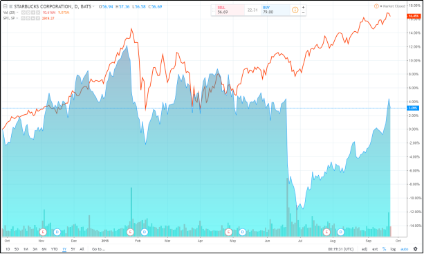 年初至今,星巴克的股价几无上涨,而同期标准普尔500指数上涨了18%。