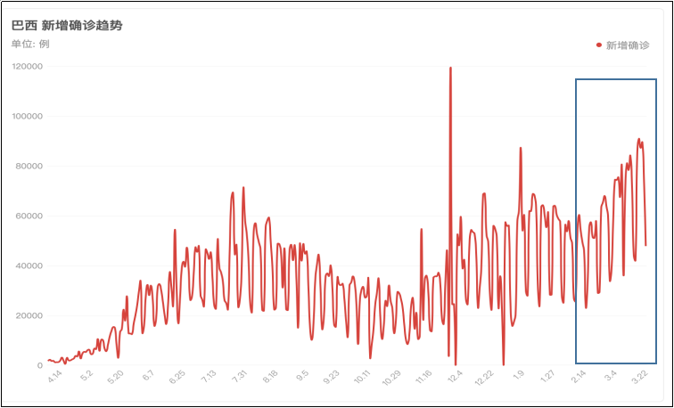 随着巴西开始进入冬季,新冠病毒疫情有再度恶化趋势。自2月24日以来,每周新增确认人数开始增加,过去一周巴西平均每天新增6.9万例确诊病例,超过美国的日均约5.6万例,成为当前世界上疫情增长最快的国家。