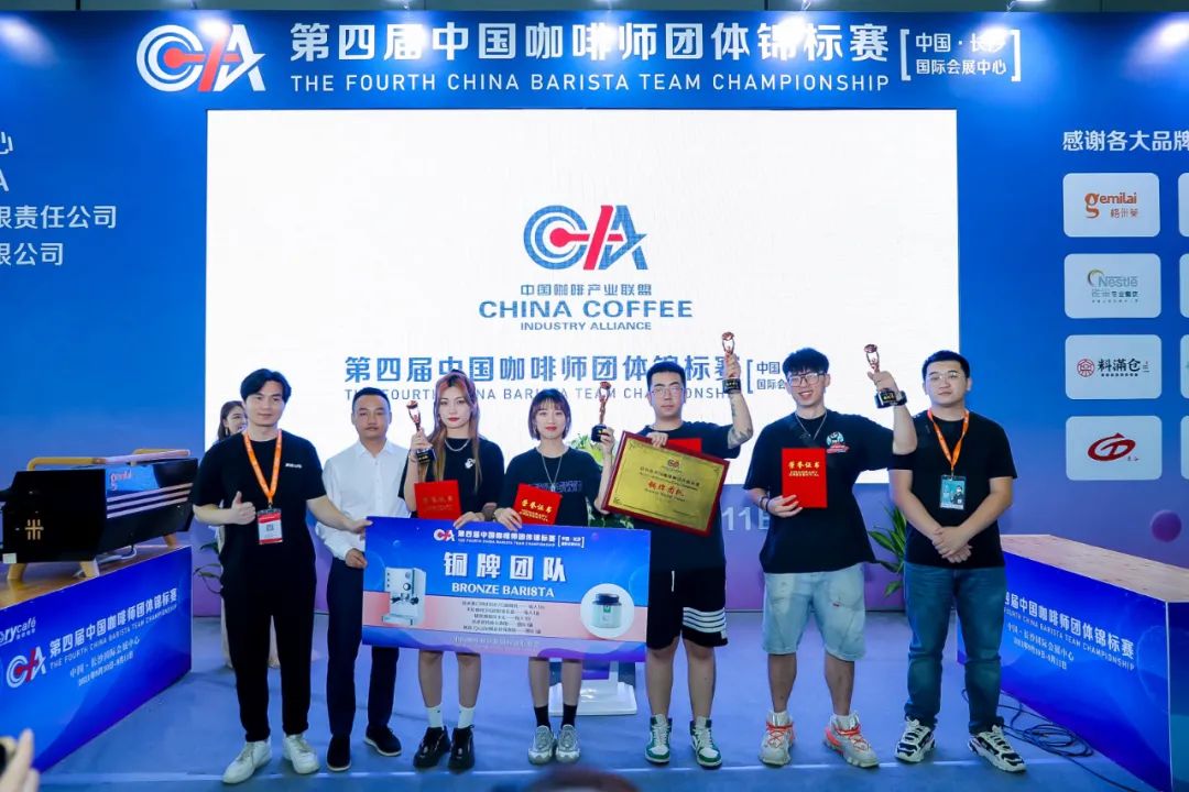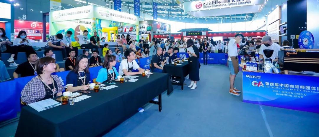 2021年9月10日-11日,由商务部流通产业促进中心指导,中国咖啡产业联盟主办,湖南捷欧咖啡有限公司承办的第四届中国咖啡师团体锦标赛,在长沙国际会展中心成功举办。中国咖啡师团体锦标赛通过模拟咖啡馆日常经营,考核咖啡店产品设计研发与搭配理念,促进咖啡供应链管理水平提高,推动咖啡馆服务品质提升。同时,立足中外咖啡文化交流,积极推动云南咖啡品牌建设,搭建咖啡贸易对接平台,引导企业与产区联动,以市场需求为导向增加咖啡服务有效供给,满足咖啡个性化、品质化、多元化消费需求。前三届赛事累计吸引26家品牌咖啡馆,近100余位咖啡师参赛,现场观众超600人次。经遴选,第四届中国咖啡师团体锦标赛事共有来自上海、广州和长沙等地的7组团队28位咖啡师入围比赛。最终,来自上海的“ALL Taste”荣获金牌团队,长沙的“立咖啡”荣获银牌团队,上海的“Seat Back”荣获铜牌团队。荣获优秀团队的四组选手分别是“戴德梁行”团队、“旅商咖啡”团队、“Sunflowers(向阳花)”团队和“长房”团队。本届赛事吸引了大批咖啡从业人员与爱好者前来观看,现场互动性强,人气火爆,获得行业一致好评与媒体广泛报道。 赛事回顾 精彩瞬间 01大合影