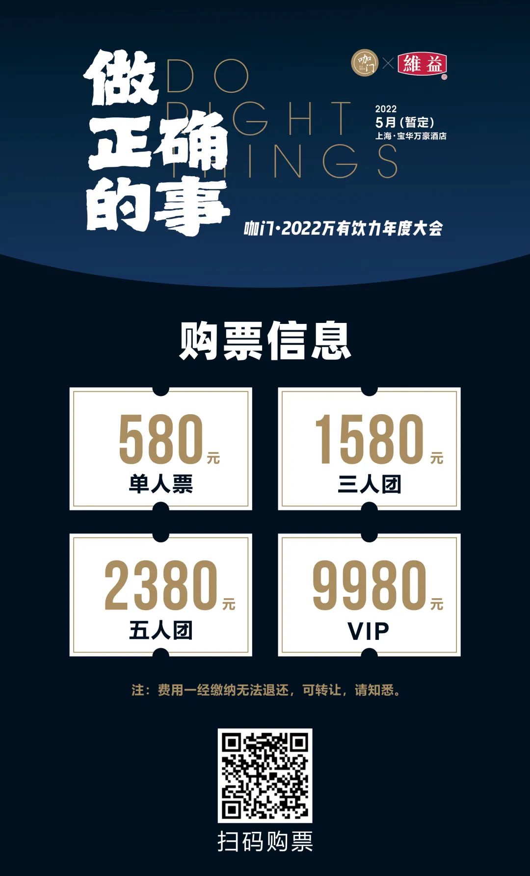每一年,饮品人都会相聚在“咖门万有饮力年度大会”,聚焦行业新形势,讨论“未来怎么干”。而根据防疫部门最新指示,为确保参会人员的安全,原定于2022年3月9~10日(上海)举办的“咖门2022万有饮力年度大会”,将延期举办。