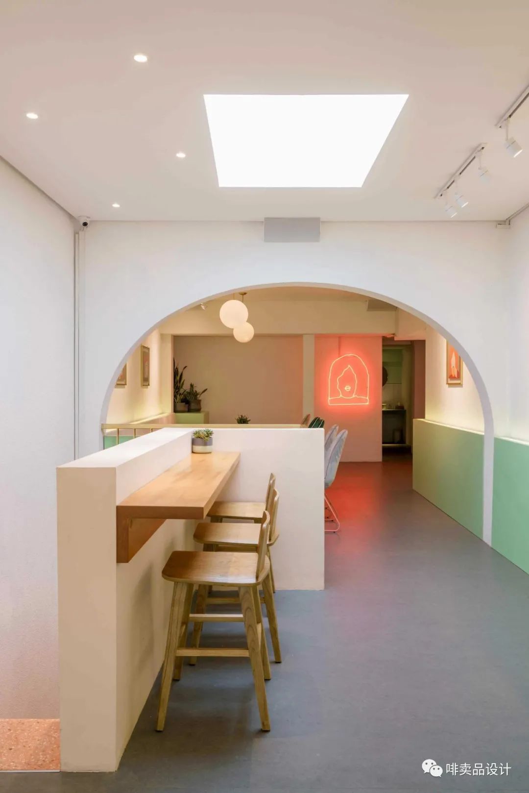 Via:Studio Kota咖啡馆分为两层,其中包括室内和室外用餐区。翻新工程利用了现有结构狭窄而又低矮的天花板空间,从而创造了独特的隧道体验。这是一个休闲度假的地方,可以休假,喝杯咖啡。尽管空间有限,但座椅布局仍设计得高效,同时又保持了明亮轻巧的空间氛围。