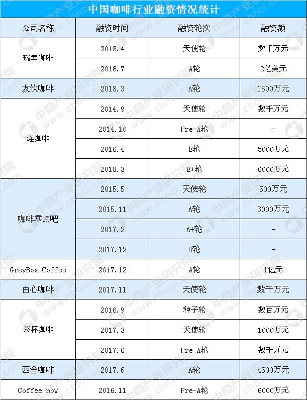 随着我国人民生活水平的提高和对咖啡文化认知程度不断增长,加之巨大的人口红利,刺激国内咖啡消费。目前,中国咖啡市场正在进入一个高速发展的阶段,因此这两年各大咖啡品牌也在不断通过加速开店、布局高端市场、强化咖啡供应链等方式,巩固自身的市场地位。国内互联网咖啡创业公司近年来,融资近20亿人民币,背后涉及VC/PE约30家。其中,瑞幸咖啡成立半年就成了独角兽。