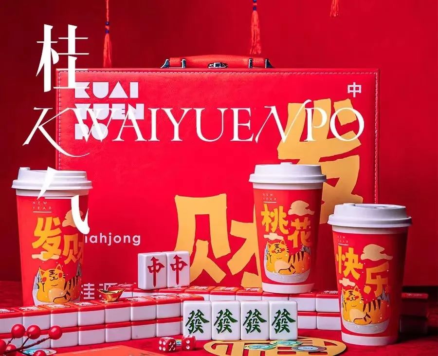 贴春联已成为春节必备习俗,打麻将/扑克也是不少人的聚会活动,在今年春节,茶饮店做营销的方式也结合了这几点。- 麻将局、扑克局
