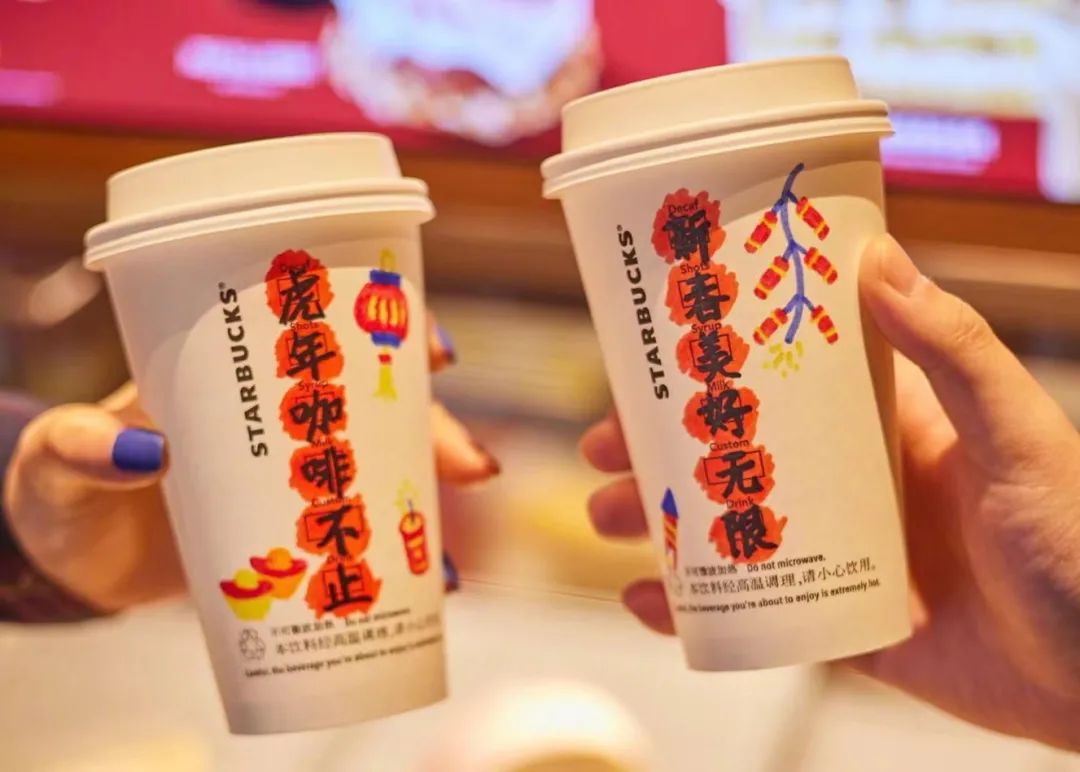 星巴克在2月1日(大年初一)推出营销新活动,在咖啡杯上对春联,有汉字/表情包/原创上联3种形式,可以通过在杯子写下联等方式对春联,凭完成挑战的截图、咖啡杯、照片等形式,领取免费升杯的奖励。