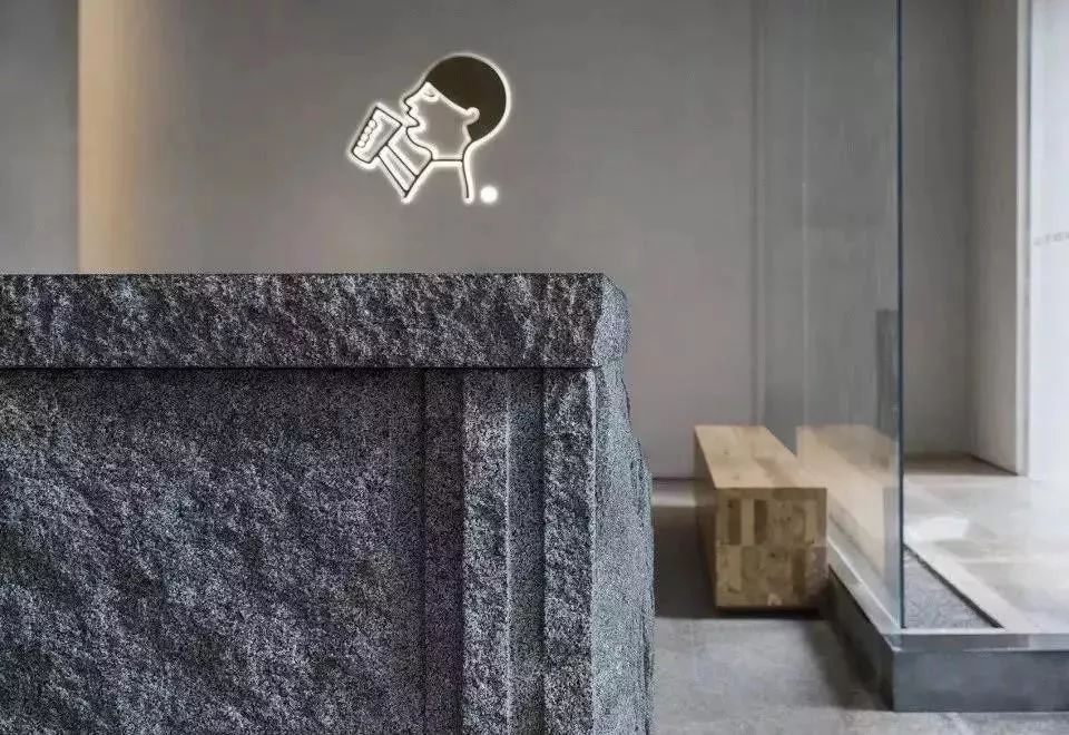 玻璃水幕把空间用流动的动态分隔流水与粗犷有力的原石映衬,动静之间让空间有了一种东方山水的韵味。门店大面积的留白也给消费者更大的想象空间,在设计中保留材质的天然肌理,用朴质原始,更近乎于本质的自然元素来诠释一个茶空间。