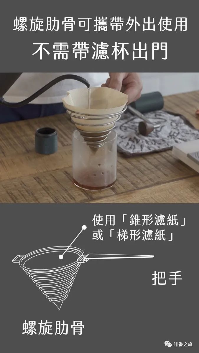 据悉这款滤杯整体耗时两年的时间进行开发设计,这款滤杯整体是陶瓷内层,外层塑料包覆,保温性尚可,之所以它会叫无限可能滤杯,是说当中的可变肋骨设计,同时依照需求变更萃取速度,梯形、蛋糕、锥形滤纸都可以适用。滤杯出口流速可调,当中的螺旋肋骨还可以支持户外携带,同时通过器具组合还能变成简易版的冰滴。