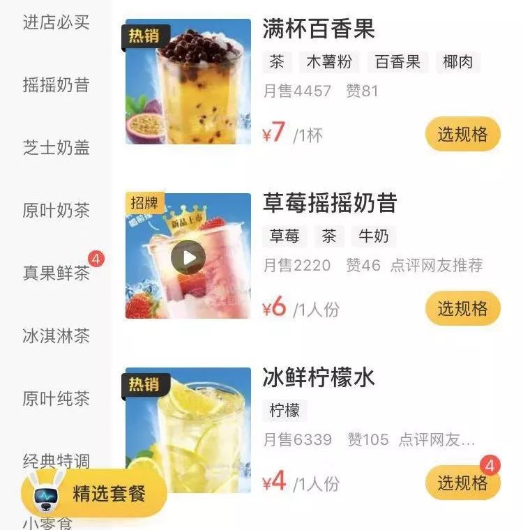 推爆品、卖辣条,把人引进来在蜜雪冰城这家月销过万单的外卖店,招牌冰鲜柠檬水月销6300多杯,满杯百香果月销4400多杯。