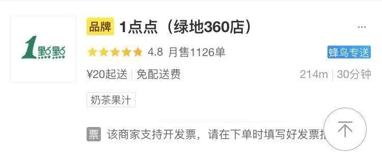 双平台月销可超过2200单要知道,这家店在中午、下午、傍晚不同时段多次经过,我几乎没看到过有人在点单。几天前的下午到店消费时,拿到的小票是84号。虽然外卖平均到一天仅有70多单,但按照20~30元的客单价计算,也可以贡献2000元左右的营业额。这对线下生意不足的门店,是个很大的补充了。再往外位置好一些的CoCo都可,双平台外卖月销量超过5000单。郑州蜜雪冰城国贸店仅在美团平台,外卖月销就超过1万单。