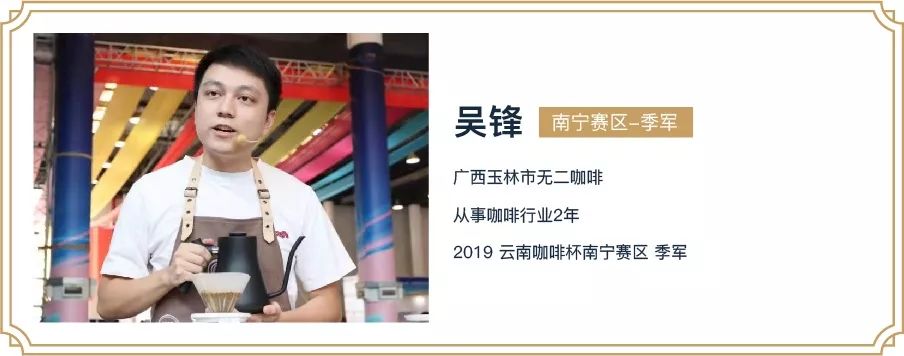 第五届2019云南咖啡杯中国冲煮大赛全国总决赛即将开始!经过了全国十大分赛区的严格选拔最终诞生了19名优秀的选手他们将站在决赛的舞台上开始最终的较量谁会是最后的赢家呢?让我们拭目以待!决赛时间:2019年12月19日—12月21日决赛地点:北京全国农业展览馆11号馆(北京东三环北路16号)让我们先来一睹入围选手的风采吧!