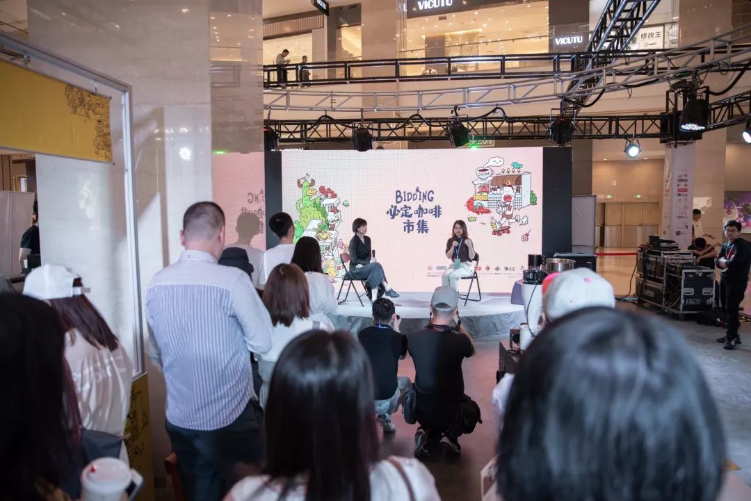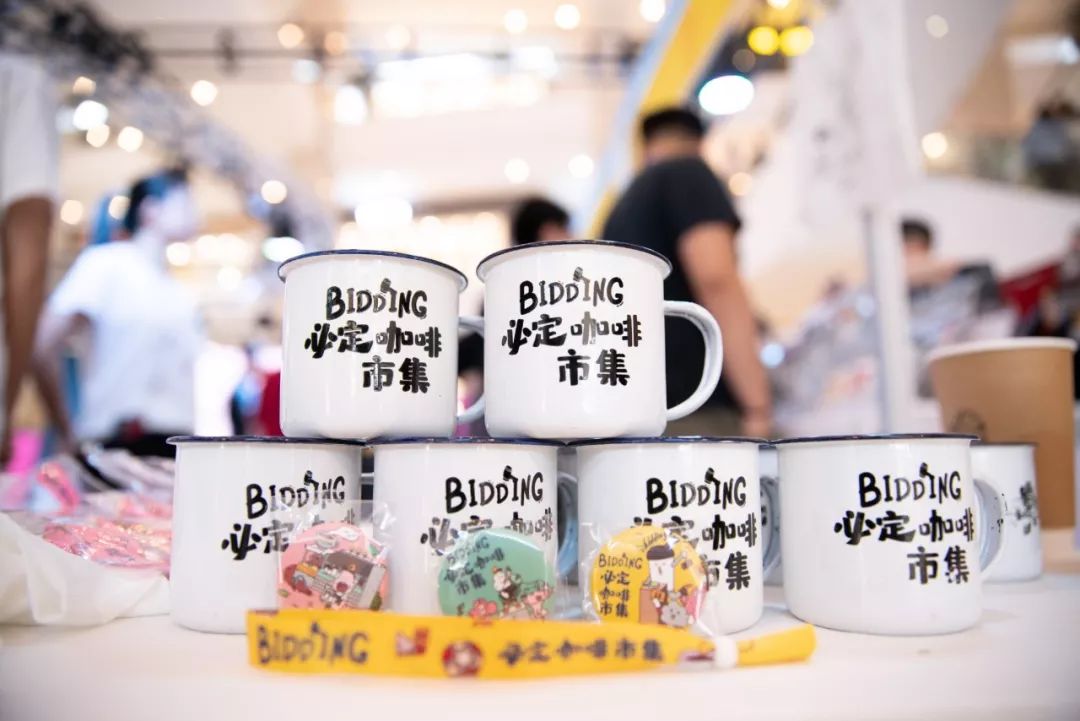 Bidding必定咖啡市集原创周边Bidding必定咖啡市集在大连最有调性的柏威年商场的一层举办,我们在商场里搭建了一个集舞台、视频播放和咖啡展位为一体的市集区域,市集当天现场的DJ根据咖啡市集的节奏播放音乐,让整个氛围轻松而愉悦。