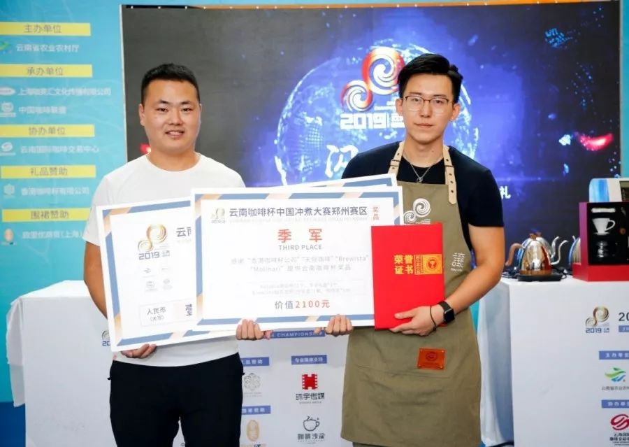 河南让啡商贸有限公司主理人 刘让先生为亚军获得者颁奖季军:李金龙
