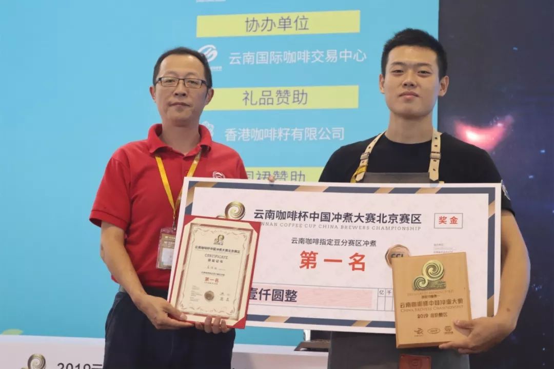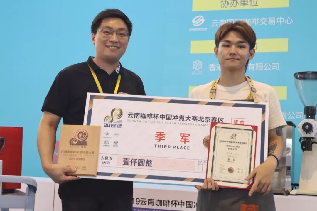 北京铂澜咖啡学院院长 齐鸣先生为季军获得者颁奖云南豆指定冲煮第一名:袁涵林