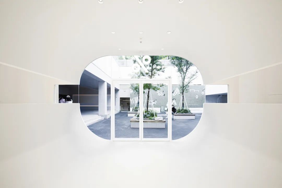 从大门内可以看到成都%Arabica咖啡馆的景色,一条白色隧道状的通道将院子与咖啡店连接起来。- 项目:% Arabica咖啡馆成都店