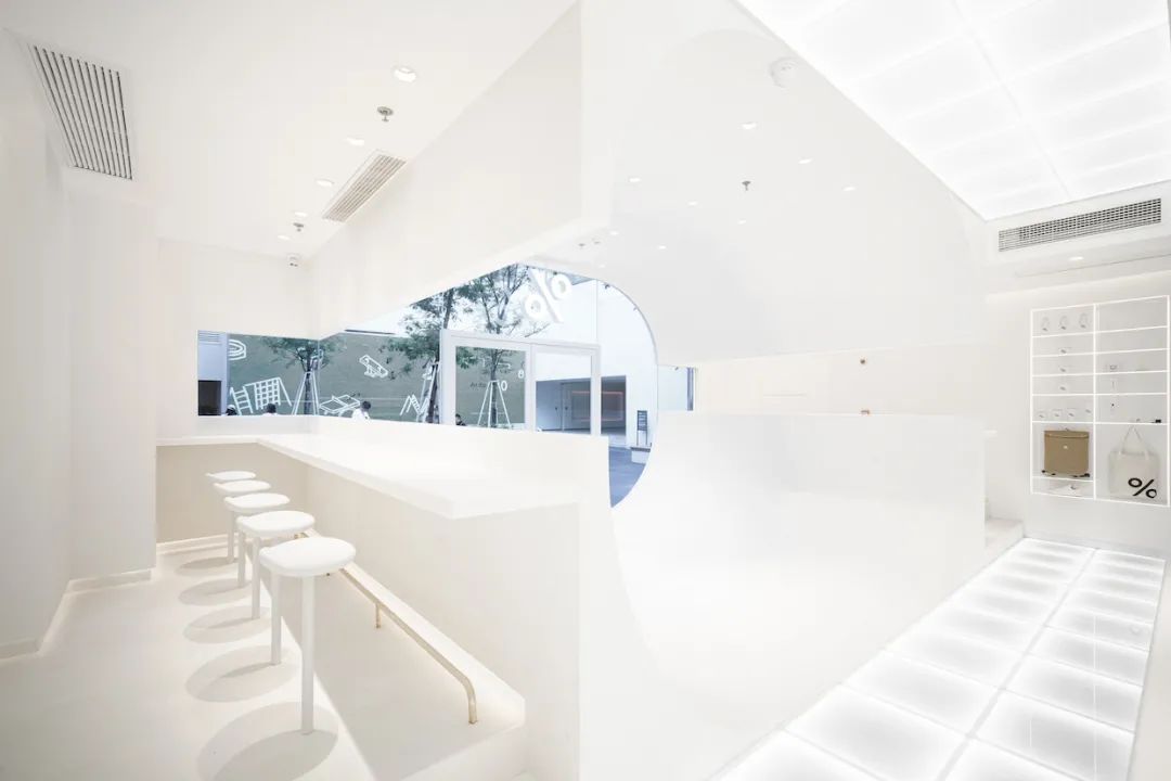 据 ARCHIEE 称,该项目的目标是在位于城市购物中心庭院外的紧凑型商店内融合中国风景、极简日本室内设计和法式咖啡馆文化。
