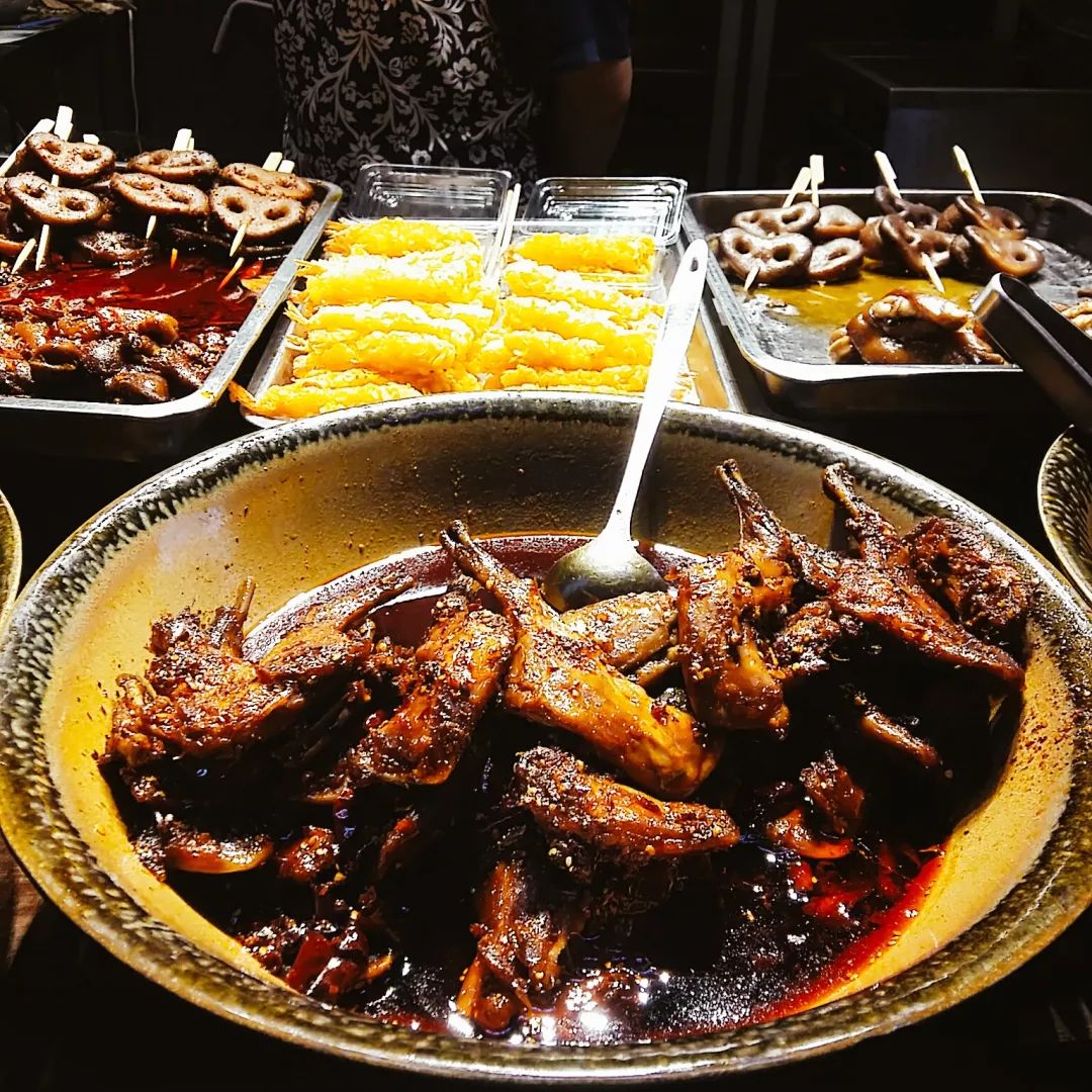 兔头成都人喜热闹,爱聊天。说不耽误吃,吃不耽误聊,吃串串最能满足成都人的畅谈欲望。新鲜的肉,串在一根根竹签上,再熬上一锅浓香的锅底,一把抓住几十根签,放入各种沸腾的麻辣汤料中,快速捞进嘴里,肉嫩多汁,好不爽快。