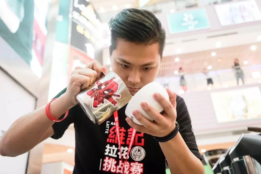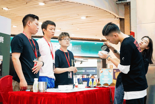 场上选手们展开激烈的对争,场下观众们除了观战,还踊跃参加“咖啡拉花体验活动”,不亦乐乎