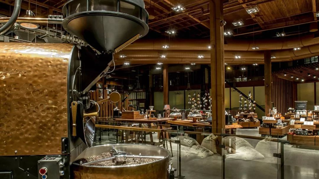 1393平方米的星巴克臻选®烘焙工坊有别于一般星巴克的门店,烘焙工坊设置大型烘豆机,现场烘焙咖啡原豆,现场研磨萃取。