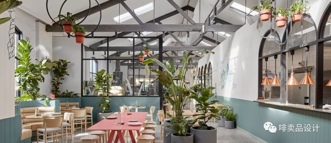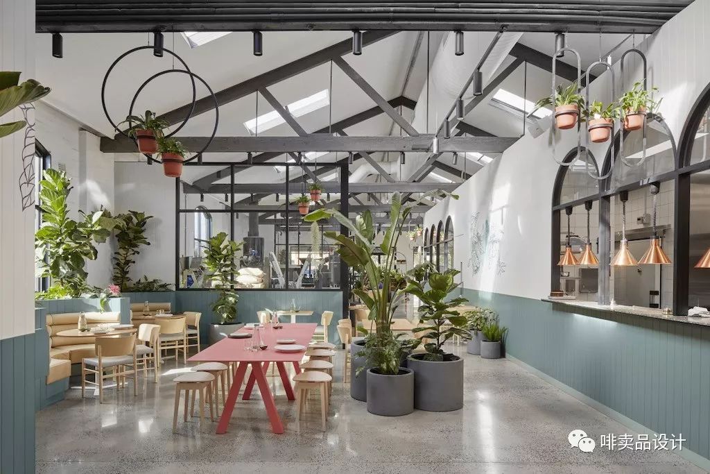 而AU79 CAFE正秉持着要像黄金一样好的理念,将建筑的过去与现在融合,实现了这个概念。600 平方公尺的粗犷用地,改建成一座生机蓬勃的室内植物园,郁郁葱葱的植栽簇拥之中,以低调的混泥土作为主视觉基调,添入优雅的蓝灰。