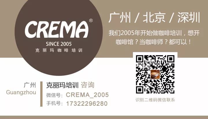 客服2号:17322296280 周老师 (可加微信咨询)客服1号:18124227455 陈老师QQ咨询:2078908465地址:广州市荔湾区芳村大道东200号1850创意园79栋3楼认准我们 | CREMA 咖啡培训中心介绍