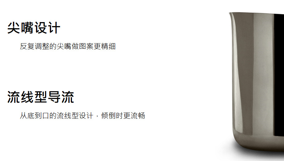 反复调整的尖嘴,让图案更精细从底到口的流线型设计,倾倒时更流畅