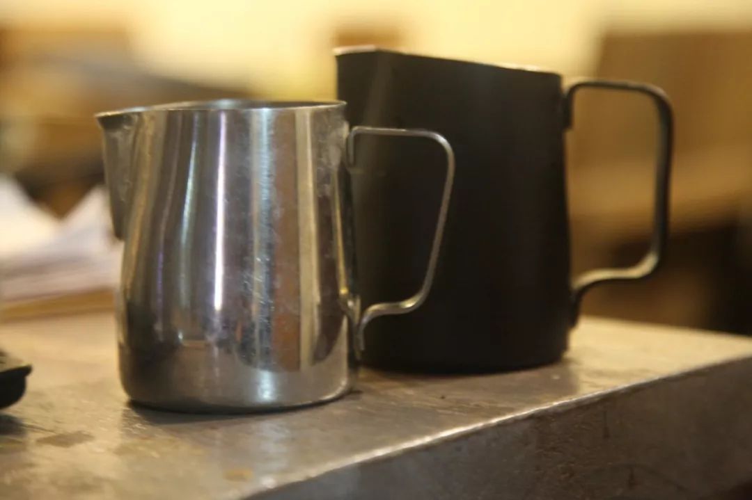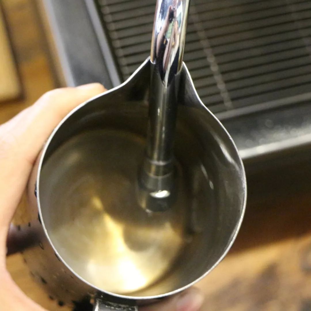 乍一看,奶缸不就是个装牛奶的容器嘛,能有什么影响哦!其实奶缸容量的大小对打奶泡其实也是有影响的啦!对新手来说,不建议用太小的奶缸,因为小奶缸的容量一般在300ml,装牛奶的量一般在奶缸容量一半,此时对于新手来说小奶缸是一种考验,很多时候因为过度加热导致牛奶沸腾出来,蒸汽过猛喷出来,漩涡不合适溅一地。| 蒸汽干燥的蒸汽对于打出来一个绵密细腻的奶泡来说是很重要的。干燥的蒸汽是怎么样的呢?如果是湿润的蒸汽,用杯子去接就可以发现明显的水,而且蒸汽所发出的声音会有很多“噗嗤”的热水声,或者是喷溅出来的热水滴夹杂在蒸汽中。相反,干燥的蒸汽,拿杯子去接也不会有水残留在底部。