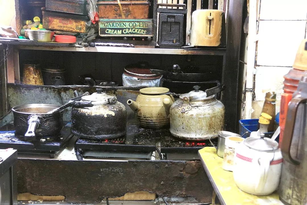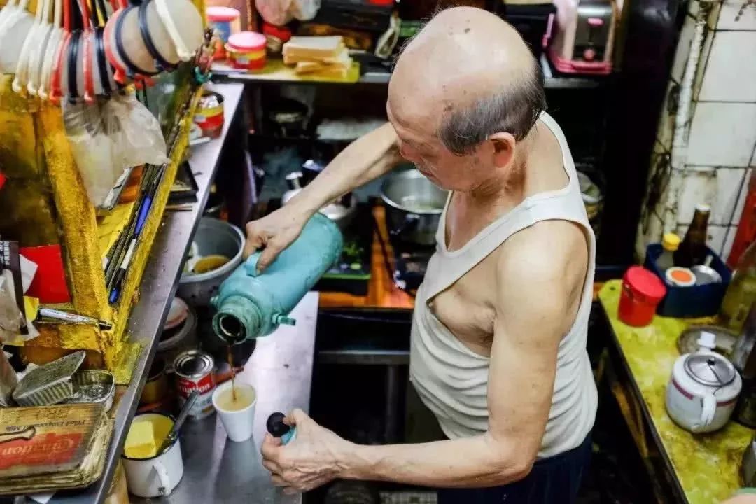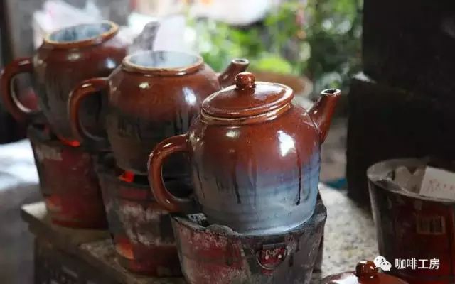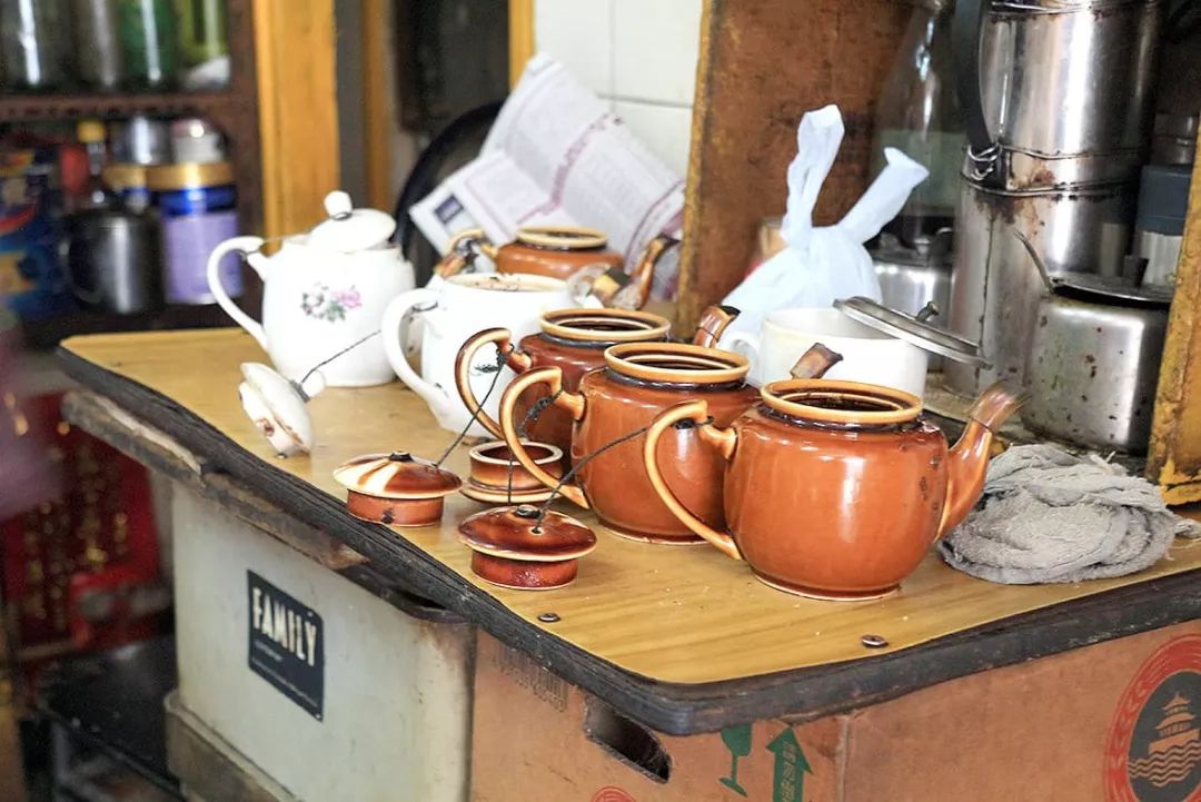 「哗,咁耐(这么久)??」 「系呀(是呀),我系慢慢煮。提早十五分钟去做罗,比如话我七点半开舖啦,我七点十五分就要煮;如果下昼(下午)三点开舖呢,两点四十五分就要煮罗。」 看来,这杯咖啡难得顺柔,不止是那只蛋白的功劳,更蕴含老板的一份认真。虽然年时已高,病痛多了,但他还坚持喝自己煮的咖啡,以确保品质:「我饮少啲,一日都有一杯嘅,少少少少咁饮,咁唔系唔知道好唔好吖嘛。有时买番嚟嘅料呢,公司做得唔系咁好,咁我自己都知道吖嘛。」 咖啡室仍然使用并式的瓷壶冲茶,瓦煲煮咖啡,极具风味。 「嚟叹返杯咖啡」就是小城市民的日常生活
