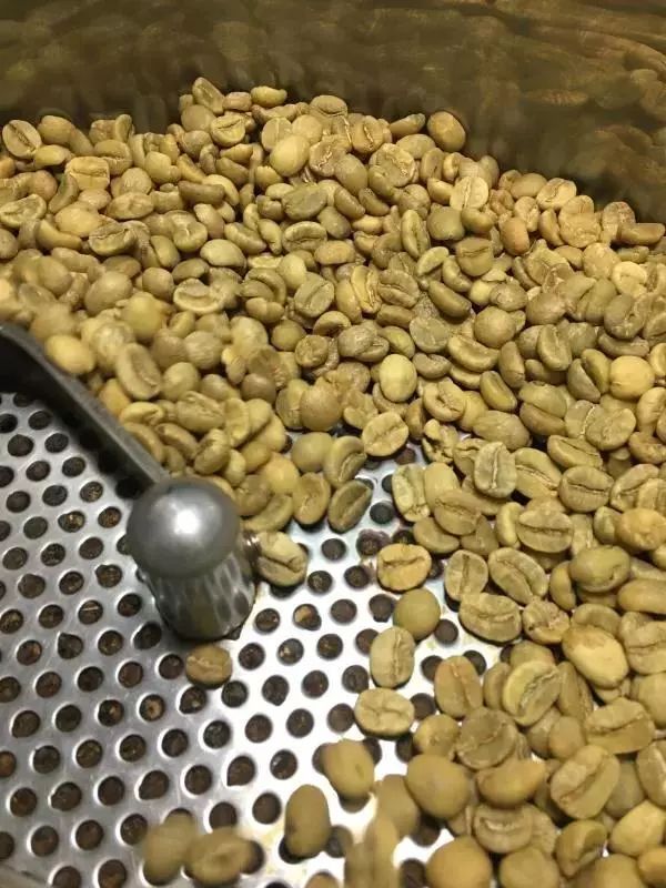 烘焙中咖啡豆由绿转黄会经过一个变白的过程,可以称作“白点”,这是脱水即将完成,豆质开始变得松软的阶段,大约在140℃左右,继续升温,就是“黄点”了。以我们烘焙肯尼亚AA【阿萨莉亚】为例,这是一支水洗硬豆,我们想要的是浅烘焙,一爆后发展12℃左右,为了不过多地磨掉肯尼亚应有的酸味和风味,刚好去除水分是我们的目的,因此停止时间就是在咖啡豆由绿变白的时候(耗时5分钟),这时咖啡豆外部水分刚好蒸发掉,然后放置完全冷却,咖啡内部的水分就会慢慢往外跑。然后第二次烘焙时采用标准烘焙,黄点加火(145℃)加快通过梅纳反应并催爆(这样可以拉高肯尼亚的酸),一爆密集降火拉平温升,下豆前关火滑行发展甜度与口感。