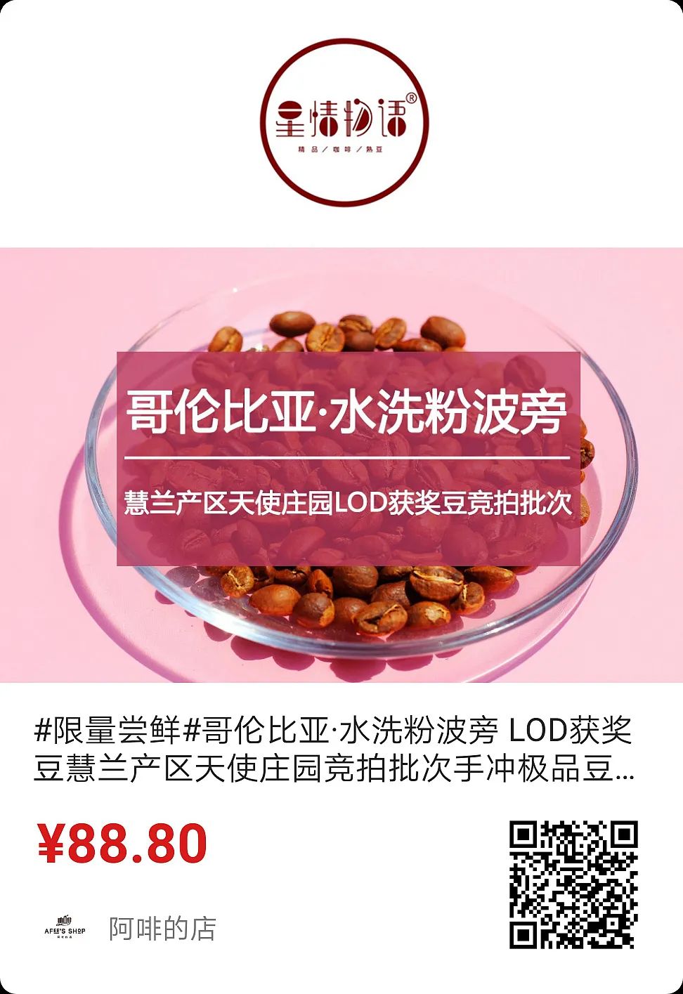 高性价比咖啡豆,就选“星情物语”!好咖啡,好星情!阿啡的店微店星情物语 | 极品咖啡熟豆 系列今天特别介绍这只哥伦比亚LOD第4名的水洗粉波旁天然花香甜美水果调性酸质活泼风味饱满耐人寻味长按下图识别二维码带走(限量50份出完止)