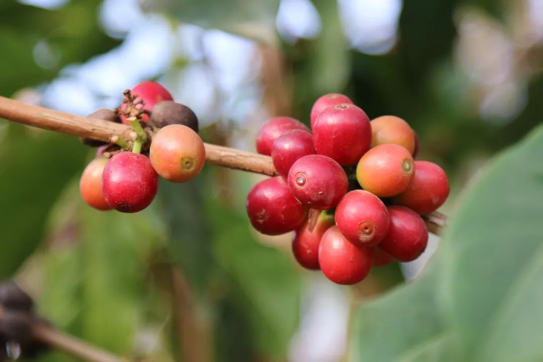 ▼树上待摘的咖啡樱桃(鲜果)▼