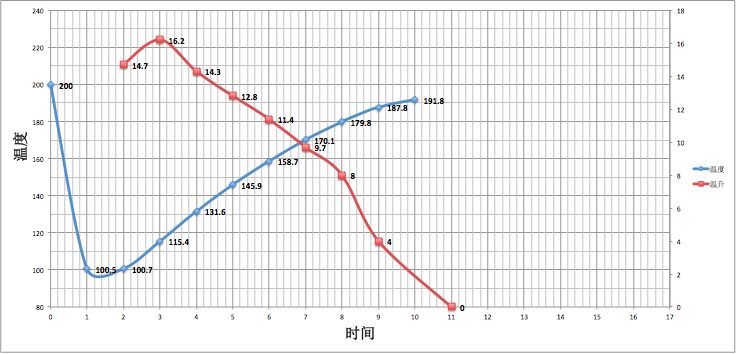 烘焙机杨家 600g 半直火 炉温至摄氏200度入锅,风门开设3, 30s后调火力150度,风门不变,回温点1‘38“, 保持火力,5‘16“时豆表变为黄色,青草味完全消失,进入脱水阶段,火力降至120度,风门调至4; 第7’05‘’脱水完毕 ,火力降至80度,8‘00”时豆表出现丑陋胡皱褶和黑斑纹,烤面包味明显转为咖啡香,可以定义为一爆的前奏,这时候要听清楚一爆爆点的声音,到8’28”开始一爆,调小火力至50度,风门全开5(调火力要非常小心,不可小到无爆裂声),一爆后发展2‘00“,193度下锅。