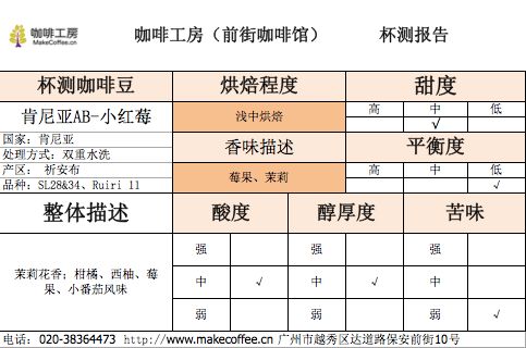 第二次水洗与发酵接著进入第二次水洗发酵程序,前阶段的咖啡豆清洗干净后,再度浸泡于水中12——24小时。这个过程会增加蛋白质与氨基酸,咖啡豆的酸度因此产生了复杂细腻的层次口感。最后,清除掉所有剩下的果胶,将咖啡豆移到架高的棚架上进行日晒干燥,干燥时间长短视天气状况而定,一般约需5——10天来完成。03 | 生豆分析 【肯尼亚AB柯玛缇娜 小红莓】的品种为SL-28、SL-34、Ruiru 11。有著很棒的甜感、平衡感和复杂多变的风味,以及显著的柑橘、乌梅特色。