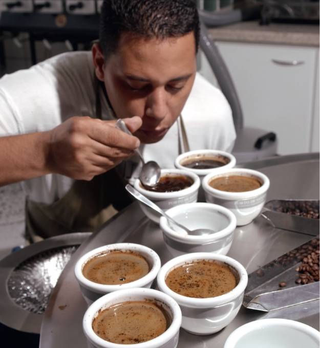 要成为专业咖啡杯测师并不如一般人所想的容易。每个人都须具备某些技巧,然后藉由他们最常做的事情逐步提升这些技能。因此如果有人表示只要上速成班就能成为完美的杯测师,请小心提防这些人。想了解如何鉴别咖啡的细微差别,必须长期累积、每天用功,因为品尝咖啡的过程中必须同时运用感官与智能。咖啡杯测师所能达到的水平,与个人好奇心及尝试的意愿呈正比,新手必须不断练习才能变得更专业。但重点不全在于练习,因为业余和专业咖啡杯测师之间的差别也在于个人资质,而这点完全是跟每个人的天赋能力有关。不过,还是试一试吧!愈努力尝试,发现自己品尝咖啡的能力进步时成就感也愈高。在此将提供一些简单的建议与信息,以便让大家运用于日常生活中,也对品尝咖啡提供具体协助。风味与香气咖啡的味道可以分为酸味、苦味与甜味。未经训练的人通常会误判某个特定口感,最常见的错误发生在辨别酸味与苦味时。首先,必须破除舌头分成不同味觉区域的迷思。其实整个舌头都能尝到各种味道;除了舌尖之外,舌面与舌侧也一样能尝到甜味,以此类推。真正的差别在于不同区域对味道的感受强度:以糖水而言,舌尖可以察觉到浓度极低的甜味,但舌头两侧只能尝出浓度高的甜味。一般而言,喝下柠檬汁时舌头两侧会有强烈的感觉,这就是酸味。舌根则是最能感受到苦味的区域。能引起这部位强烈反应的东西,可能包括草药酒、蒲公英叶或某些药物。仔细留心感受到的各种刺激,就能辨别和评估口中咖啡各种成分的强度。品味香气则是更微妙的工作。有两种方式可以辨别咖啡的香气:首先闻咖啡的气味(直接气味或鼻前气味),接着再留意只有喝了第一口之后才会出现的余味(间接气味或鼻后气味)。经证实,我们可以透过鼻前与鼻后通路察觉到不同香气,以不同方式辨别相同的气味。如果味道与香气之间的区别不够清楚可辨,可以试试以下的小实验:紧捏住鼻子,尝一小口咖啡留意口中的感觉,这就是咖啡的味道。现在先不要将咖啡吞下,放开鼻子留意脑中接收到的新讯息。这时你就能辨识出咖啡的香气了。这个方法也可以用于品尝其他食物,像是果汁或甜点。例如,捏住鼻子便难以辨别水蜜桃与杏桃或其他热带水果的差异。