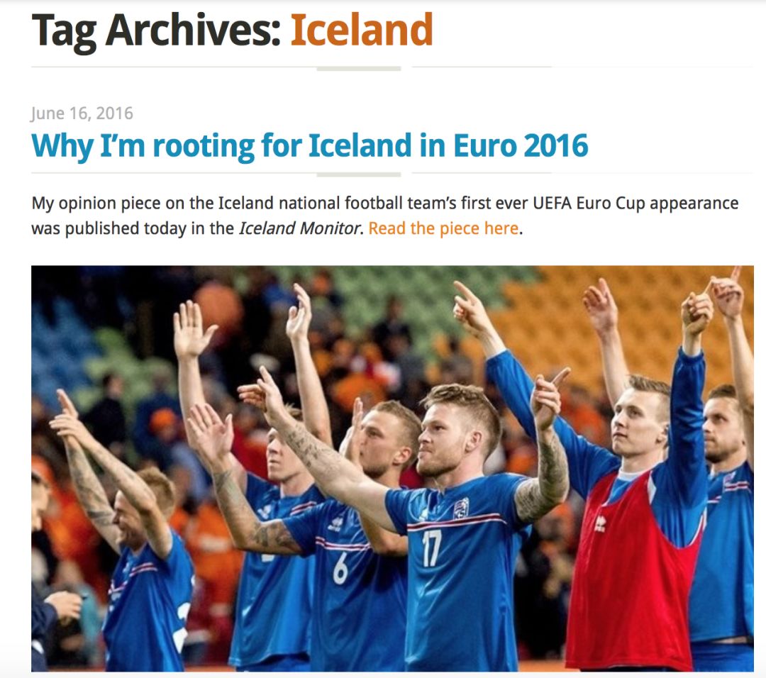 可以说非常惊讶,Willona Sloan 原来也曾兼职过冰岛足球队,参加过2016欧洲杯,这真是个神奇的国家,2016年法国欧洲杯上,冰岛能以奇迹般的姿态击败英格兰,杀入八强。 来自Willona Sloan blog: