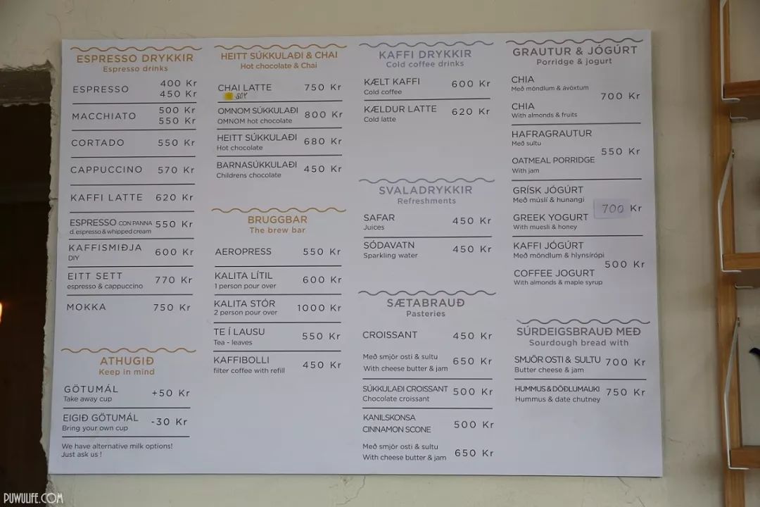 不过它的来头可不小,创立者Sonja和Ingibjorg在世界咖啡师大赛上都获过大奖。 雷克雅维克曾经被CNN评为世界八大咖啡城市之一,是SCAE(Speciality Coffee Assn. Of Europe)认证的成员,表示其咖啡有相当的品质。 靠近地标哈尔格林姆教堂(Hallgrímskirkja),如果背对教堂请走右手边那条路(Frakkastigur),咖啡馆外观是一栋白色建筑且没有醒目招牌,店名就贴在玻璃窗上,很容易就散步路过了!