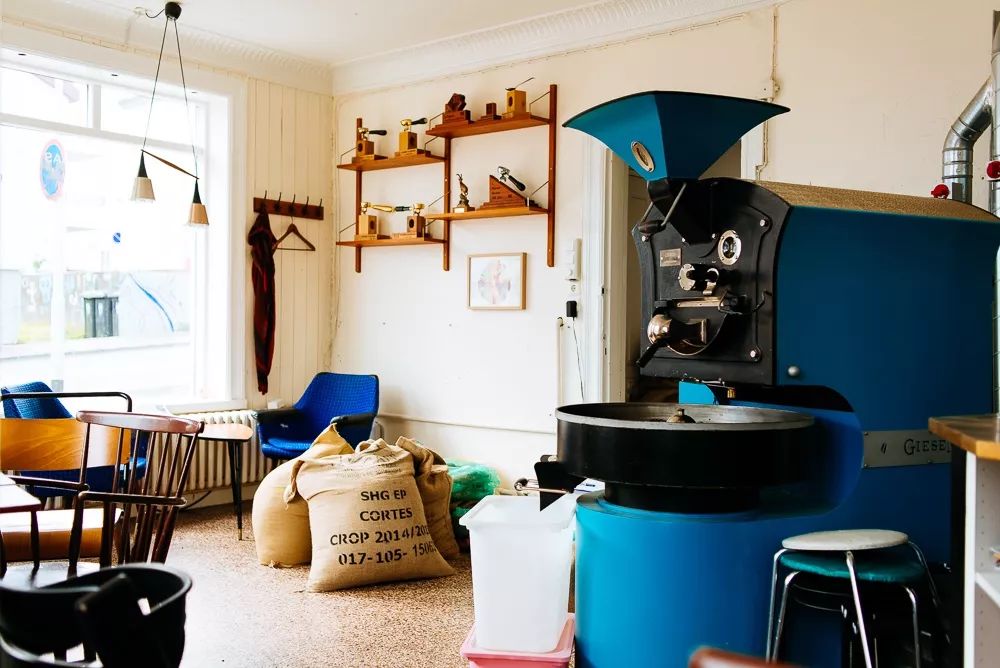 Reykjavík Roasters以前叫Kaffismiðja Íslands,当时的咖啡馆里有2台粉红色的烘焙机,如今艳粉色的咖啡豆烘培机已被亮蓝色取代。