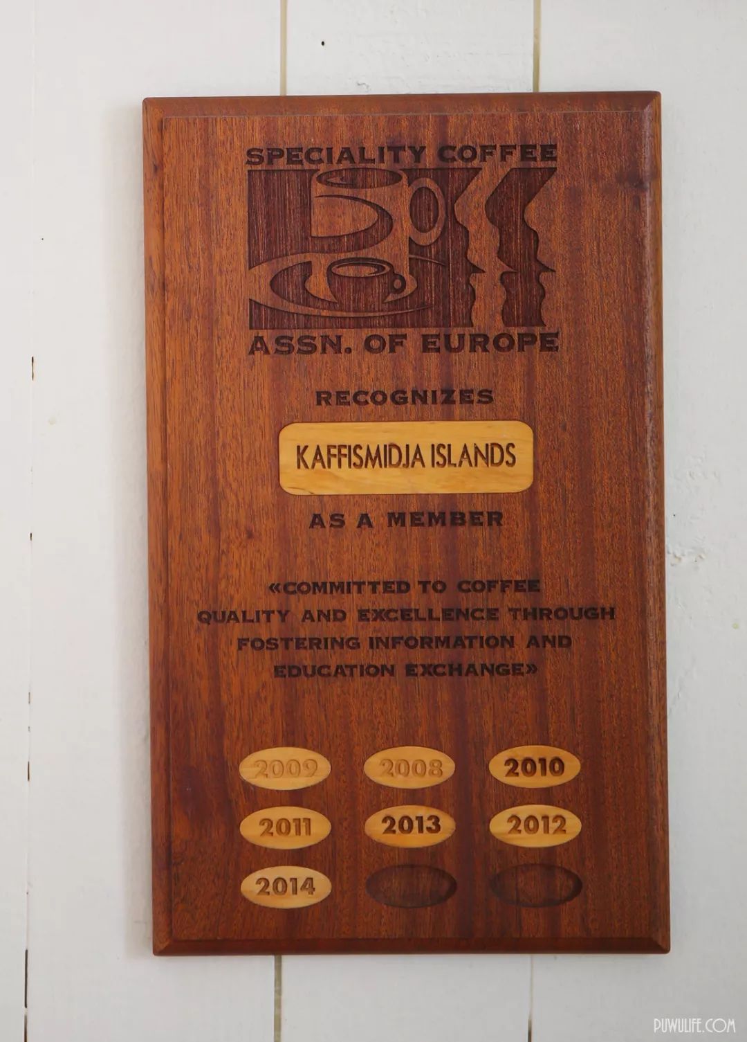 背後一共有四位创办人,每一位都在世界咖啡师大赛得过奖,也时常被请去做各种咖啡比赛的评审。店内墙上挂着一块SCAE的认证木牌,SCAE(Speciality Coffee Assn. Of Europe)成立於英国伦敦,是由寻求咖啡极致品质的同好所组成,不但被政府认可,同时更是享誉全球的国际组织。