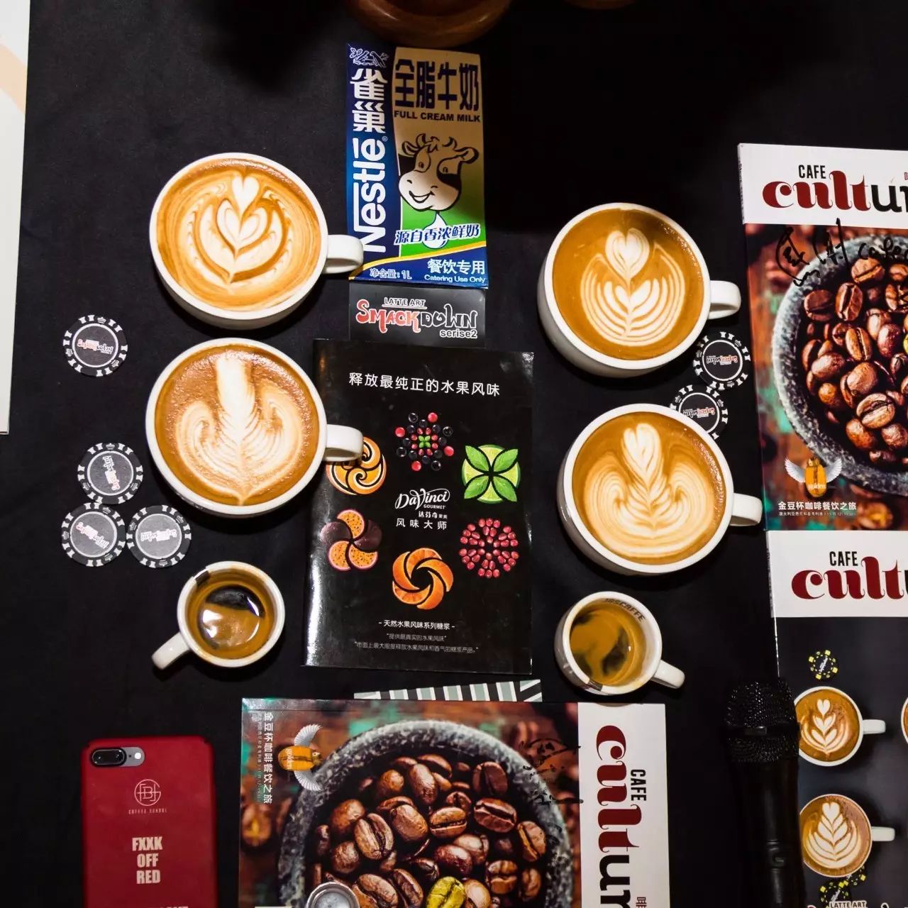 选手们的完美拉花~本次“雀巢杯”拉花抗赛指定用品和赞助商:冠名赞助 + 全程牛奶赞助