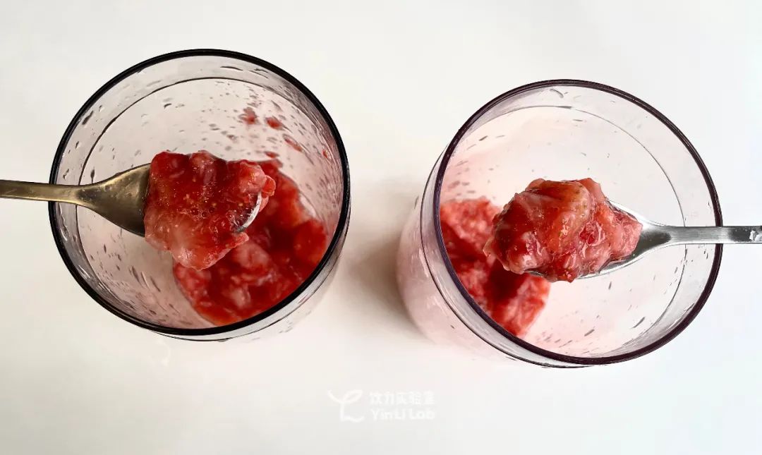 延伸:能不能捶捣其他水果?在茶饮店,除柠檬茶有捯捶需求外,在水果茶的出品中,也需要将凤梨、草莓等鲜果人工捯捶至果蓉状态使用。这个机器能不能捯捶其他种类的水果?经机器调试后发现,由于其他水果肉质软、要求捯捶效果细且均匀,需将机器压力值调低、底座调高,可达到想要的捯捶效果。- 捯捶草莓