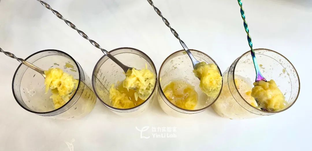 加冰、切片、切块捯捶后状态小结:1.不同方式下捯捶的柠檬制作饮品后,风味表现接近,可判定机器的稳定性价值,同时相比人工捯捶,也能体现出标准化优势;2.在此基础上,用切块的柠檬进行捯捶,有助于水果预处理阶段提升效率。3.效率测试和人工比,机器能快多少?从单杯出品看,根据柠檬的品质评估捯捶的次数,人工的灵活性和效率更高。但可以预见,出品杯量大的情况下,设定好机器参数后,机器具有效率优势。小结:在柠檬茶出品量大的门店,或能起到提升效率的作用(未进行门店实地测试)。
