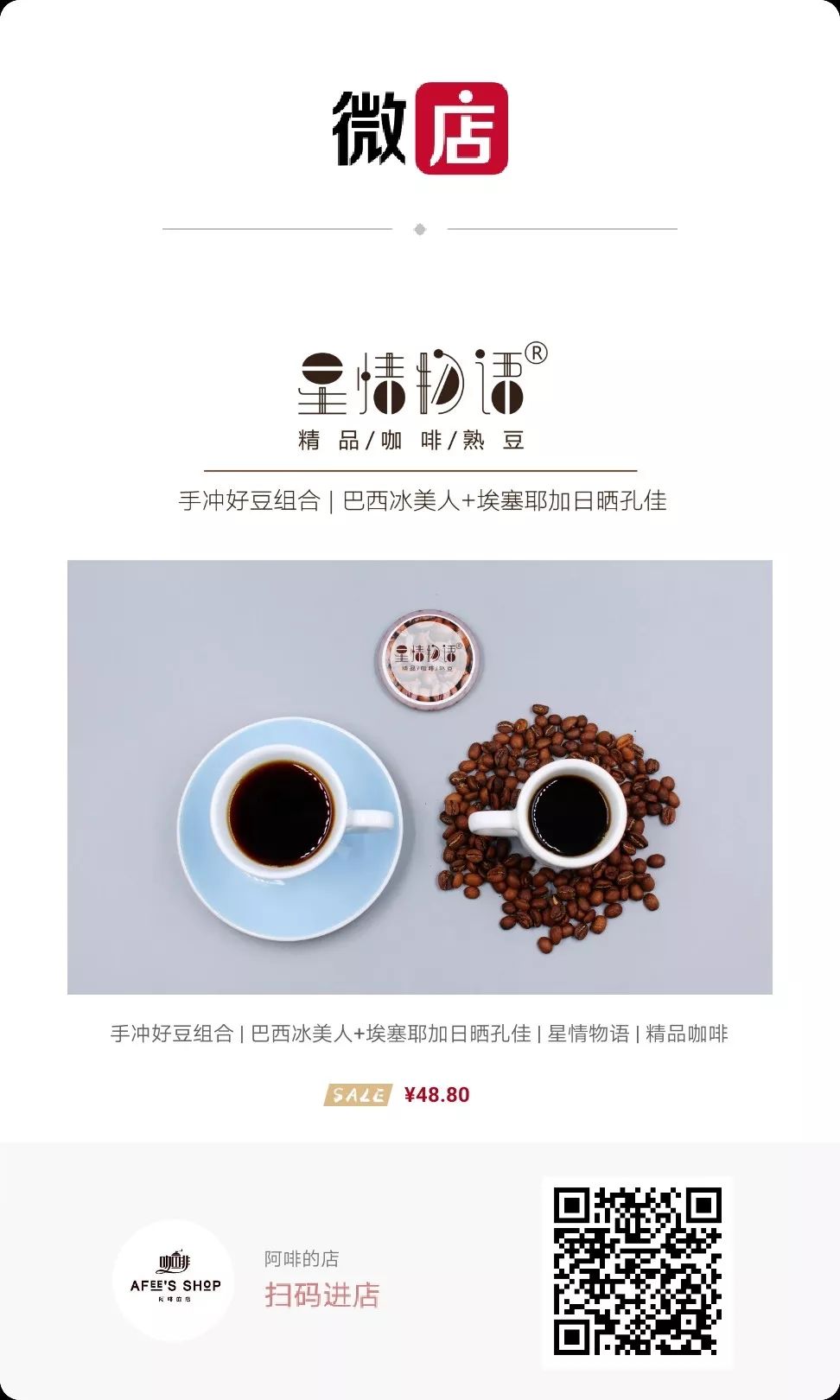 以上两只难得的手冲好豆,组合特价喜欢就长按下图识别二维码轻松入手喝完让你甜到2020年!阿啡的店(微店)更多“星情物语 | 精品咖啡熟豆”好豆推荐每只都是风味与口碑俱佳请看完放心下单,新鲜烘焙并送达!愿每一杯好咖啡,都能带给你好星情!点击“阅读原文”进入阿啡的店,每天有特价好物!