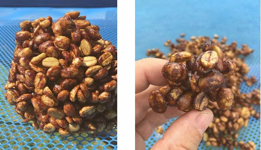 知识点:巴西竟是蜜处理咖啡的始祖!谈到巴西咖啡,有一点不得不说,就是巴西的半日晒处理法,也与当下的各类流行的蜜处理方式有着很大的渊源。因为巴西当地缺水,但是大部分地区又气候潮湿,干燥效率低下。因此在日晒水洗都行不通的情况下,聪明的巴西人创造了刨开咖啡果皮,在床架上/水泥地上晾晒,快速提升干燥效率的处理方式。而这种方法,传到了哥斯达黎加,就被不断在细节改进,成了蜜处理。可以说,巴西是咖啡蜜处理的始祖。▼“冰美人”生豆▼星情物语 | 精品咖啡熟豆 |巴西 冰美人产地:巴西产区:佩德拉尔瓦 Furnas农场品种:yellow catuai海拔:950-1350m处理:厌氧冰蜜(去除部分果皮后在冰桶里隔绝空气进行厌氧发酵)烘焙度:中度烘焙烘焙时间:下单后才烘焙,保证新鲜送达Coffee Review:87分冲煮建议:88度热水,1:14粉水比,1:40s结束萃取整体风味:甘蔗 西柚 甜瓜 (甜度很高,尾韵持久)香气:研磨后甘蔗、巧克力、酸橙酱、坚果湿香:蜂蜜、蜜饯、黑巧克力风味:橙子、蔗糖、可可、烤坚果,中温红糖、龙眼干、烤麦芽余韵:坚果、可可、桂圆、烤麦芽▼“冰美人”熟豆▼