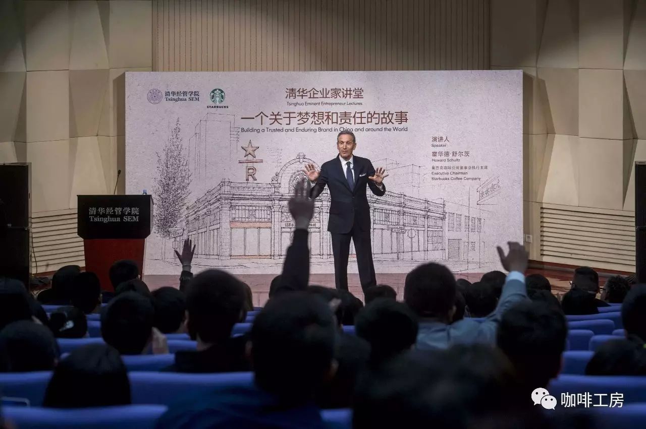 每日精品咖啡文化杂志咖啡行业交流请加私饮品界前街咖啡,微信号:(长按复制)IMAKECOFFEE 【2017年4月12日北京】“一家商业上市公司的使命和责任是什么? 仅仅只是盈利赚钱么?只是为股东带来回报么?如何在商业利润和社会责任之间实现平衡?”星巴克咖啡公司董事会执行主席霍华德·舒尔茨(Howard Schultz)以3年前星巴克全球股东大会上的问题开场,在清华大学发表了题为《一个关于梦想和责任的故事》的主题演讲。 演讲中,霍华德·舒尔茨分享了他窘迫的童年经历及他父亲当年艰难的工作,现实的困境击碎了他幼年心中的美国梦。因而,从7岁开始,他就有了另一个梦想,那就是建立一个能够将公司的成功和财富与公司里每一个人分享的企业,建立一个他父亲没有机会工作过的公司。