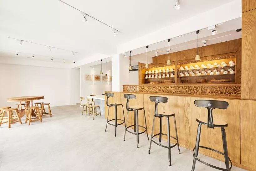 中医诊所在新空间之中,不改其仁心仁术的待客之道,贴心设计了一张白色大理石桌,让病患可以在此享用清茶,同时等待药师抓药包药。比起上门就医,入门造访更像是走进设计咖啡厅,可以自在休憩放松心境,也算是提供了看诊之外另一种疗愈效果。
