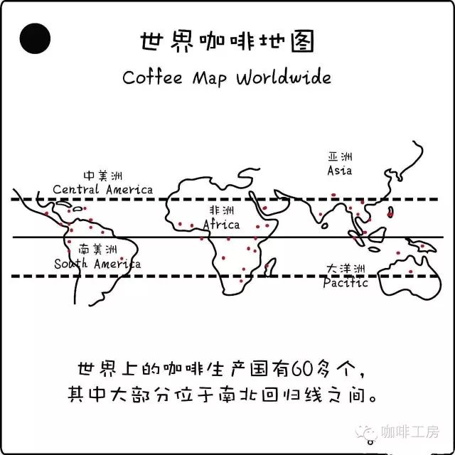 每日精品咖啡文化杂志咖啡行业交流请加私饮品界前街咖啡,微信号:(长按复制)IMAKECOFFEE【导读】咖啡的世界丰富而有趣,各大洲的咖啡有一些共性各有特色,咖啡是赤道到北纬十五度的产物,因此,南美和亚洲及非洲都有生产。但是,在赤道至北纬十五度所产的咖啡,太过浓烈,且有苦味,故只有一些喝咖啡而不知其味的人,才会爱好。其实最好的咖啡应该产自北纬十五度至北回归线之间。