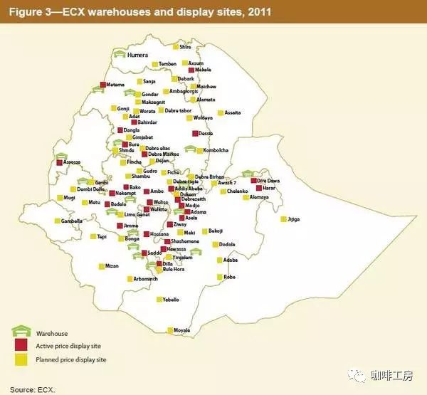 图 ECX咖啡区域来源TradeaidECX的特点与未来改进 ● 分布式的集中仓储,给中小型生产者提供便利,减少运输成本 ● 所有流通的咖啡都必须通过ECX进行质量评定,统一的评定与分级标准,长远来看是有利于国际品牌力的确立 ● T+1的结算机制,生产者可以更快的拿到所得 ● 合作社联盟与大型私有商可以不经过ECX直接出口,弥补了统一平台交易无法满足国际买家对高品质咖啡追溯性的需求 ● 针对国际买家对高品质咖啡的需求,专设了DST(Direct Specialty Trade)针对“精品”等级咖啡交易,参与DST交易的买家同样需要预先特别针对DST单独注册 ● ECX在USAID和The Sustainable Coffee Program的协助下,在推进一套由IBM研发的全新电子信息系统用于记录咖啡从处理站到ECX仓库的过程,意味着以后通过ECX渠道购买的咖啡不在只有是SIDAMO A 还是YIRGACHEFFE B之类的风味等级和大区信息,它也会有自己的“出生证明”,这个证明将通过一个标牌,一个条码追溯到这袋咖啡什么时间在哪个处理站进行了处理(不管是wet mil还是dry mil) ● ECX会将咖啡的仓储与分级业务剥离出去给独立的第三方机构,以解决目前仓库针对大型生产商交易能力不足的瓶颈,同时由第三方负责将最大程度避免仓库的分级作假情况。