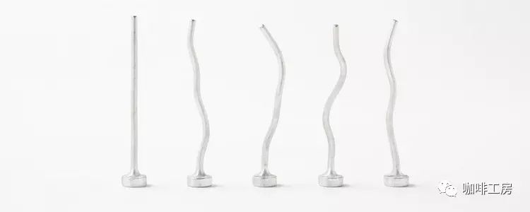 不仅如此,他们还将「揉捏」的概念带进了餐具设计,如带有仿生把手的咖啡杯和搅拌器,像是手工揉捏出来的,展现出独特的样貌。另外,搅拌器还带有一个让人惊喜的双重功能:印章。可以用咖啡代替墨水印出 Connel 的标识。这也正体现了 Nendo 工作室的设计精神:出其不意,做出任何你能想不到的形式设计。