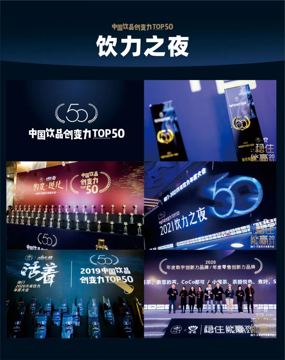 4.TOP50饮力之夜8日夜间,还将进行TOP50饮力之夜颁奖典礼。过去的一年,哪些品牌表现亮点?有哪些区域黑马崛起?谁能代表主流发展动向?精选饮品业门店端、供应链端品牌,颁发行业荣誉奖杯,共赴饮力之夜颁奖晚宴(邀请制),进行一场更加沉浸的交流。