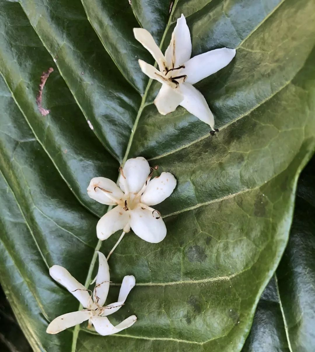 以下三种咖啡花从上到下分别是爸爸:Canephora, 卡尼佛拉妈妈:Eugenioides 埃乌嘿尼奥伊德斯孩子:Arabica 阿拉比卡