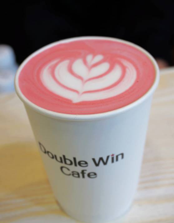 Photo by Sundy从不回头看爆炸红丝绒蛋糕吃过不少,红丝绒拿铁倒是第一次尝试~不过看到这个马卡龙粉,小资君的少女心就一下子炸裂了。咖啡味也很浓郁,口感微甜还带有谷物的香味。据说这抹粉红来自甜菜根,纯天然的食材哦~