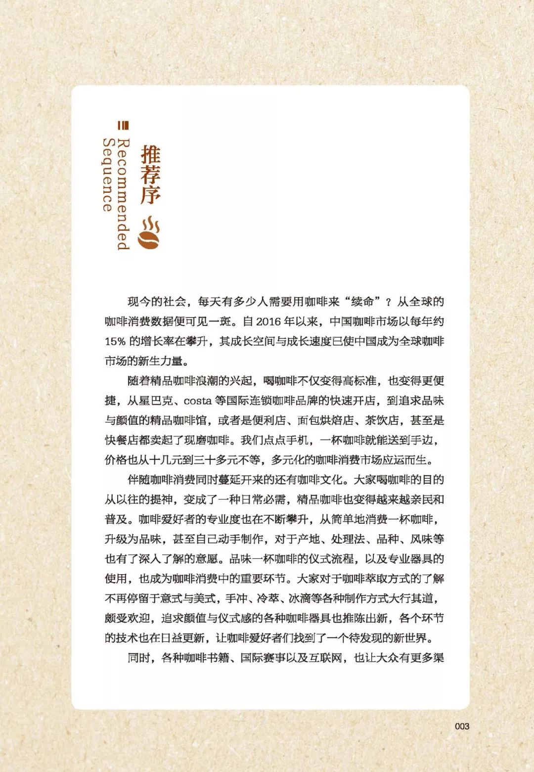 【出版信息】书名:《3分钟爱上咖啡》编著:咖啡精品生活出版社:江苏凤凰科学技术出版社书号:978-7-5713-0082-1价格:68.00元出版时间:2019年4月开本:16 印张:15页数、字数:240页,150千字装帧:平装 全彩纸张:128克高档哑粉纸